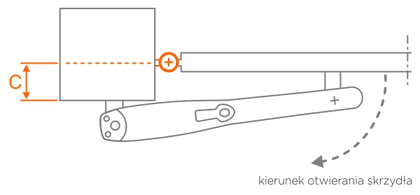 W tym punkcie trzeba się zagłębić w techniczne zagadnienia montażu siłownika do bramy skrzydłowej. Popularny w instrukcjach Nice wymiar „C” – odległość zawiasu od krawędzi słupka, ma kluczowe znaczenie przy wyborze odpowiedniego napędu. Dla przykładu, metalowe słupki 100×100 mm, w których zawias zamocowany jest w połowie daje wynik C=50mm. I tutaj praktycznie każdy napęd z oferty Nice da się poprawnie zamontować.