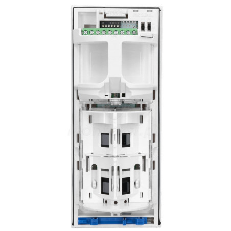 Czujka posiada wbudowane 4 elementy PIR, umieszczone po 2 ze strony prawej i lewej. Dodatkowo działa ona w oparciu o logikę AND, która warunkuje załączenie alarmu ze strony prawej lub lewej. Aby czujka zasygnalizowała obecność intruza konieczne jest naruszenie obu elementów PIR w tym samym czasie (osadzonych po stronie prawej lub lewej czujki). Takie rozwiązanie redukuje ryzyko wystąpienia fałszywych alarmów i zapewnia odporność na ruch wykonywany przez niewielkie zwierzęta.