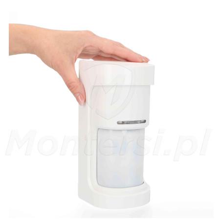 Dodatkowo czujka działa w oparciu o logikę AND, która warunkuje załączenie alarmu po stronie prawej i lewej. Do sygnalizacji obecności intruza konieczne jest naruszenie obu elementów PIR i elementu MW w tym samym czasie (osadzonych po stronie prawej lub lewej czujki). Takie rozwiązanie redukuje ryzyko wystąpienia fałszywych alarmów i zapewnia odporność na ruch wykonywany przez niewielkie zwierzęta, taki jak psy lub koty.
