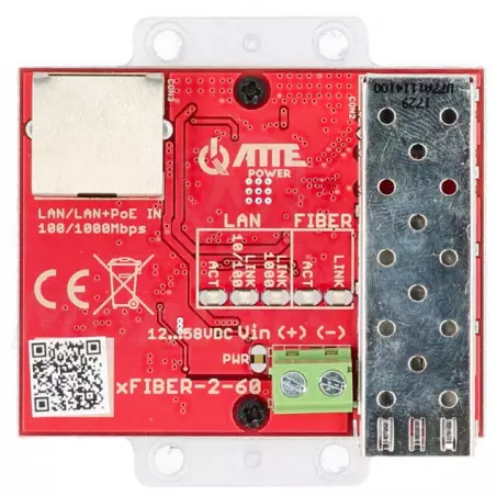 xFiber-2-60 - Gigabitowy media konwerter Ethernet - SFP. Konwerter może być zasilany za pomocą PoE 802.3af lub PASSIVE oraz za pomocą tradycyjnego zasilacza 12...58 V DC. Konwerter przesyła dane z prędkością 10/100/1000 Mb/s. Do najważniejszych cech konwertera należą: