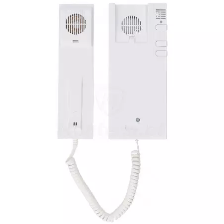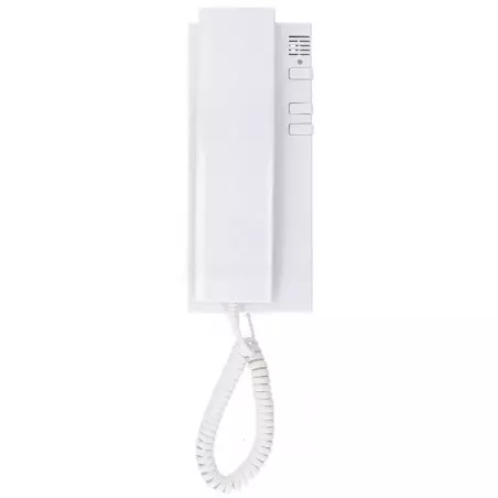 Unifon wykonany z białego tworzywa sztucznego przeznaczony do pracy w analogowym systemie firmy ELFON. Wyposażony w przycisk pozwalający na otwarcie elektrozaczepu furtki lub wywołanie interkomu. Unifon wyposażony jest w diodę sygnalizującą wywołanie oraz 3 stopniową regulację głośności.