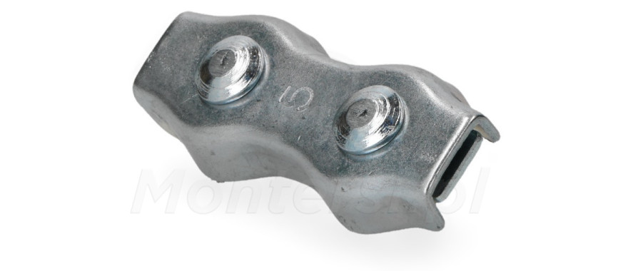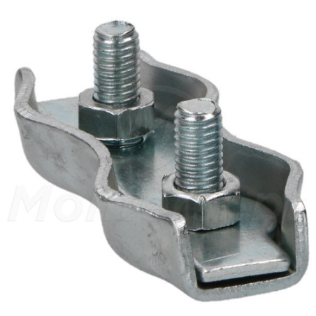 ZACS-5P - Podwójne zaciski siodełkowe do lin stalowych. Przy ich pomocy możliwe jest uzyskanie pętli z liny, przez jej zaciśnięcie w dwóch miejscach.