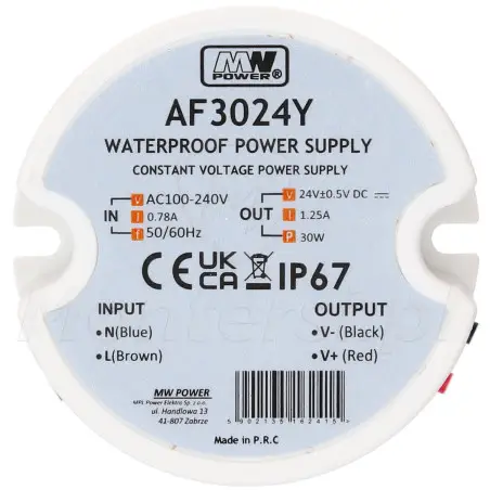 Zasilacz impulsowy 24V/1.25A-TP-V2 marki MW POWER to kompaktowe i szczelne źródło zasilania o stałym napięciu 24 V DC, zaprojektowane z myślą o niezawodnej pracy w trudnych warunkach środowiskowych. Dzięki klasie szczelności IP67 i możliwości montażu w puszce 60 mm sprawdzi się w aplikacjach wewnętrznych i zewnętrznych, zarówno w instalacjach przemysłowych, jak i domowych.