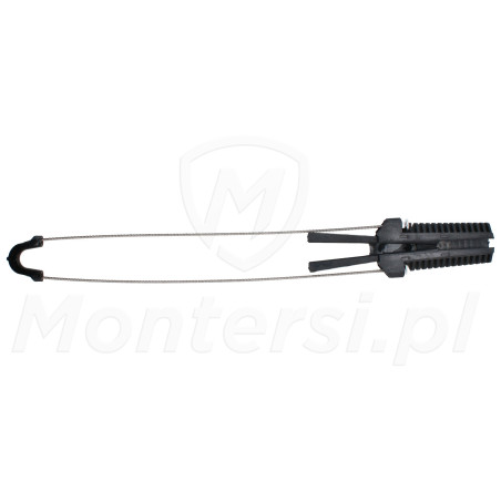 ACE PA 6-9 - Zawiesie odciągowe ACE dla kabli 6,00 - 9,00 mm przeznaczone do podwieszania samonośnych kabli światłowodowych w ramach sieci napowietrznej. Jego zadaniem jest odpowiednie naprężenie kabla ADSS w przebiegu linii napowietrznej oraz jej zakończenie. Zawiesie powinno być stosowane obligatoryjnie w przypadku zakręcaniu linii powyżej granicznego kąta 15°. Sprawdzi się w przypadku sieci FTTH, instalacji kabli liniowych oraz odgałęźnych do klienta.
