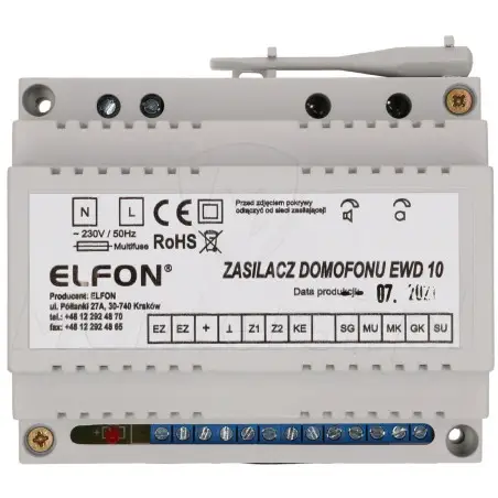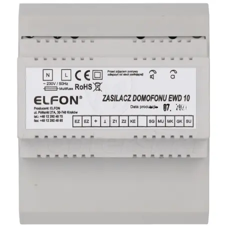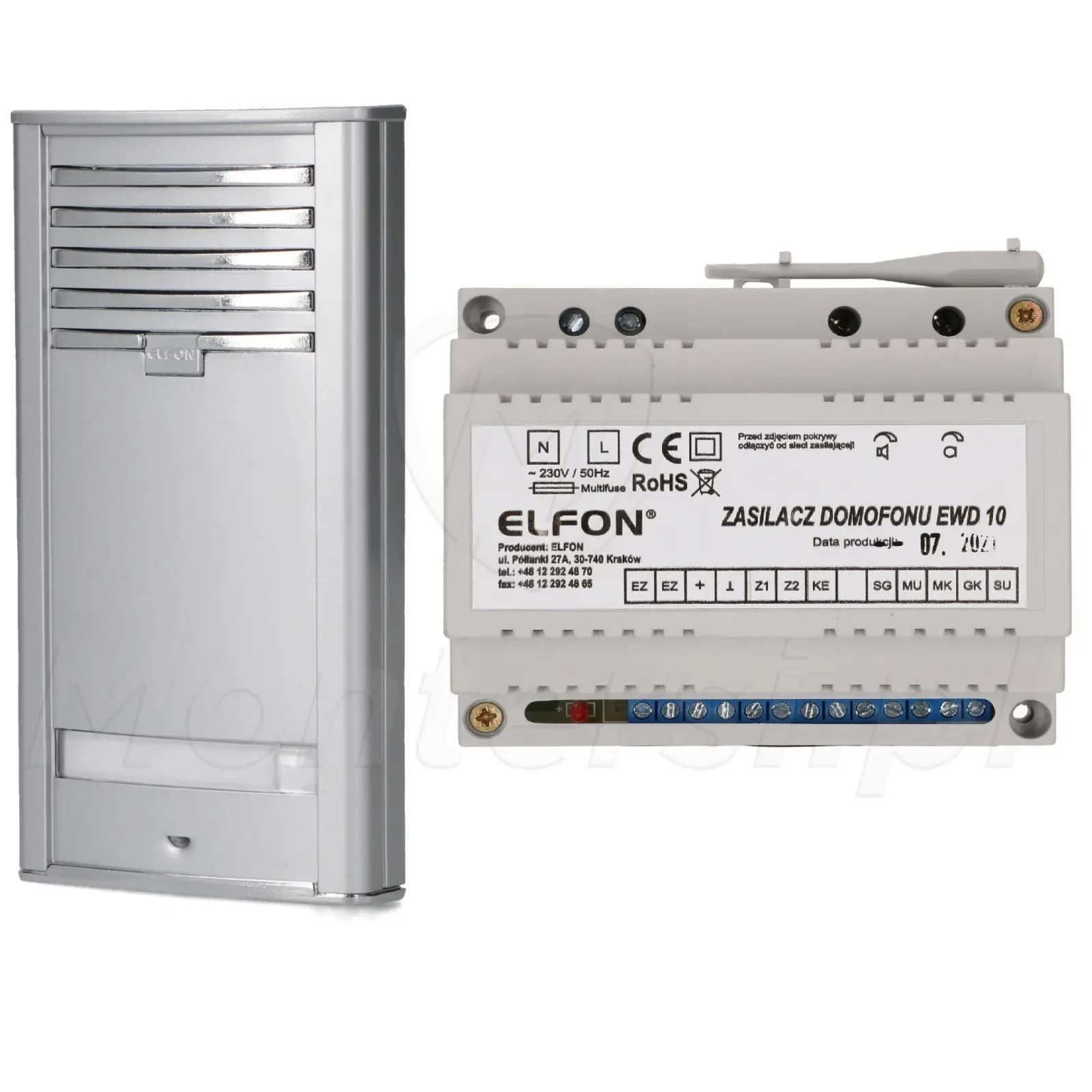 ELFON EWD-10 jest zasilaczem przeznaczonym do łączenia z analogowymi systemami domofonowymi. Obudowa typu EURO wraz z ramką przykrywającą połączenia elektryczne, pozwala na bezpieczne użytkowanie oraz wygodny montaż naścienny.